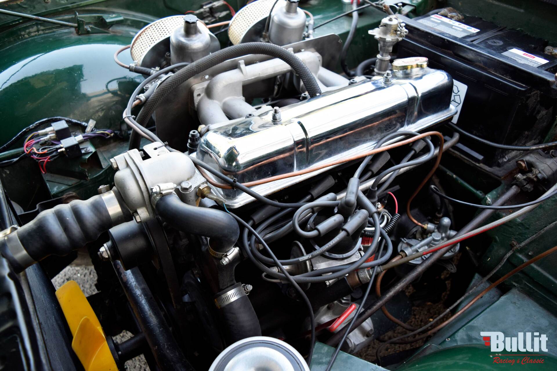 Cette TR4A irs est équipée d'une boite manuelle 4 vitesses avec overdrive et d'un moteur 4 cylindres en ligne.